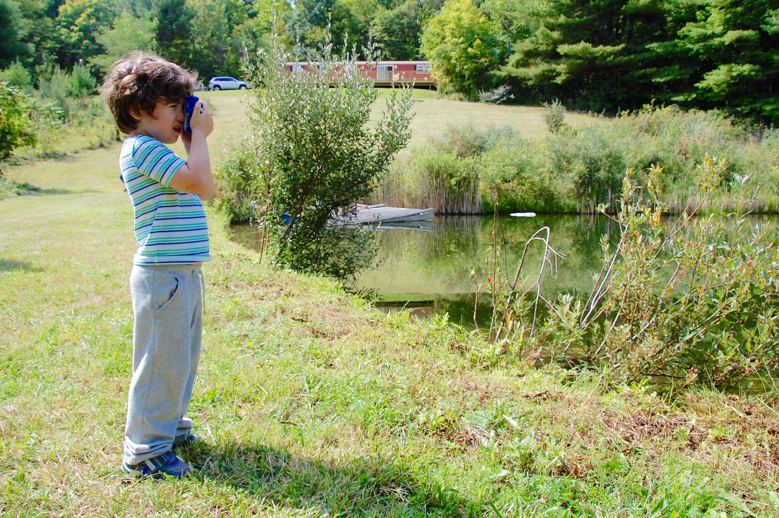 Archie managed to scare away every bullfrog and dragonfly before trying out his new waterproof, non-digital(!) camera from our cousin, photographer Christopher LaRosa. Although Chris is only in his twenties and probably barely remembers using film cameras himself, he really believes that photographs should be printed and held in your hands. I don't shoot on film myself, but I make photo yearbooks every December and I regularly have prints made of my digital photos. With a backdrop like this, it's hard to take a bad shot.