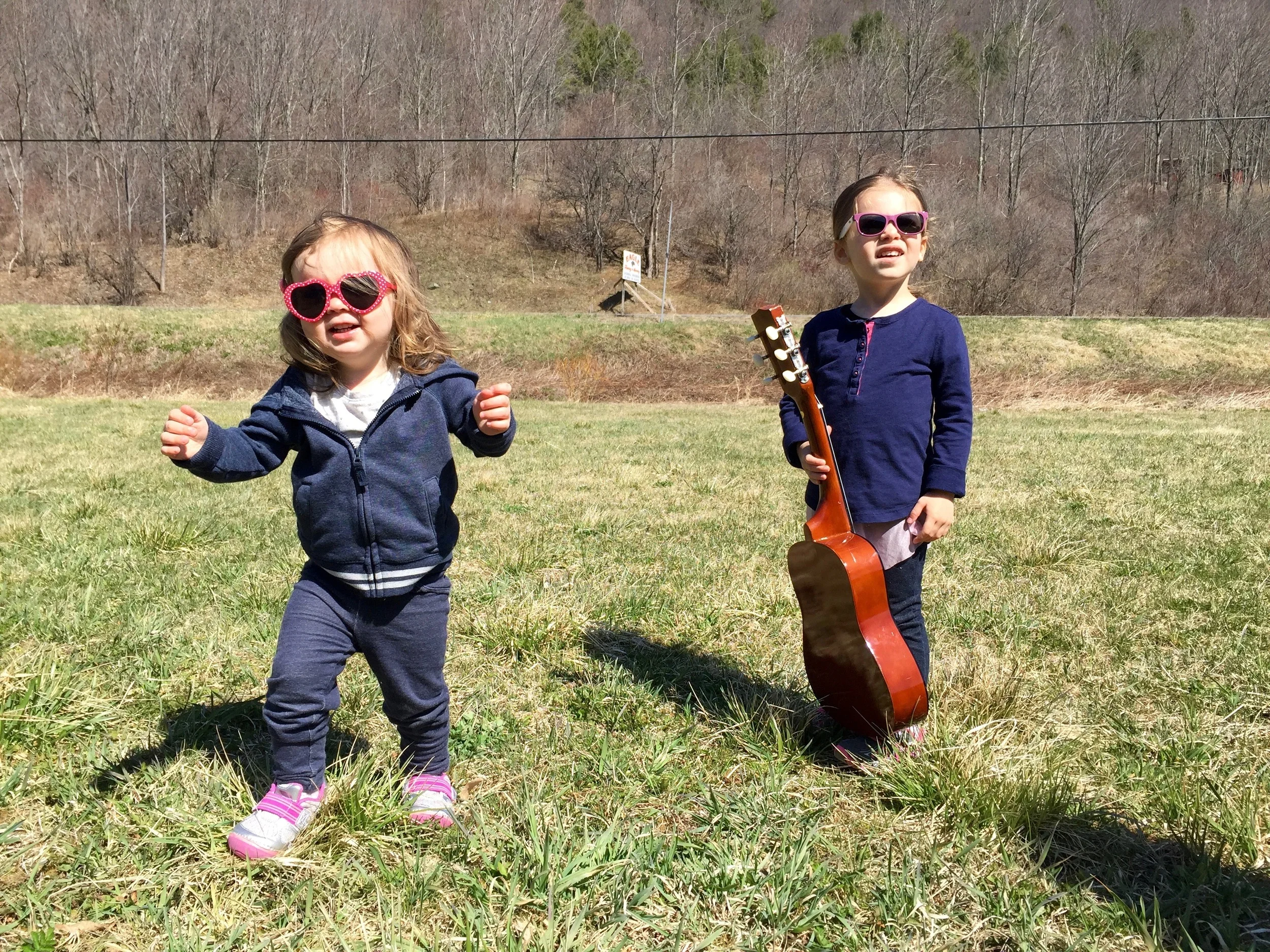 And if flea markets are your thing, you can find some real treasures on the cheap. My sister scored a kid-sized guitar for her daughter for only 5 bucks! Ramona and I helped her stage some band photos.