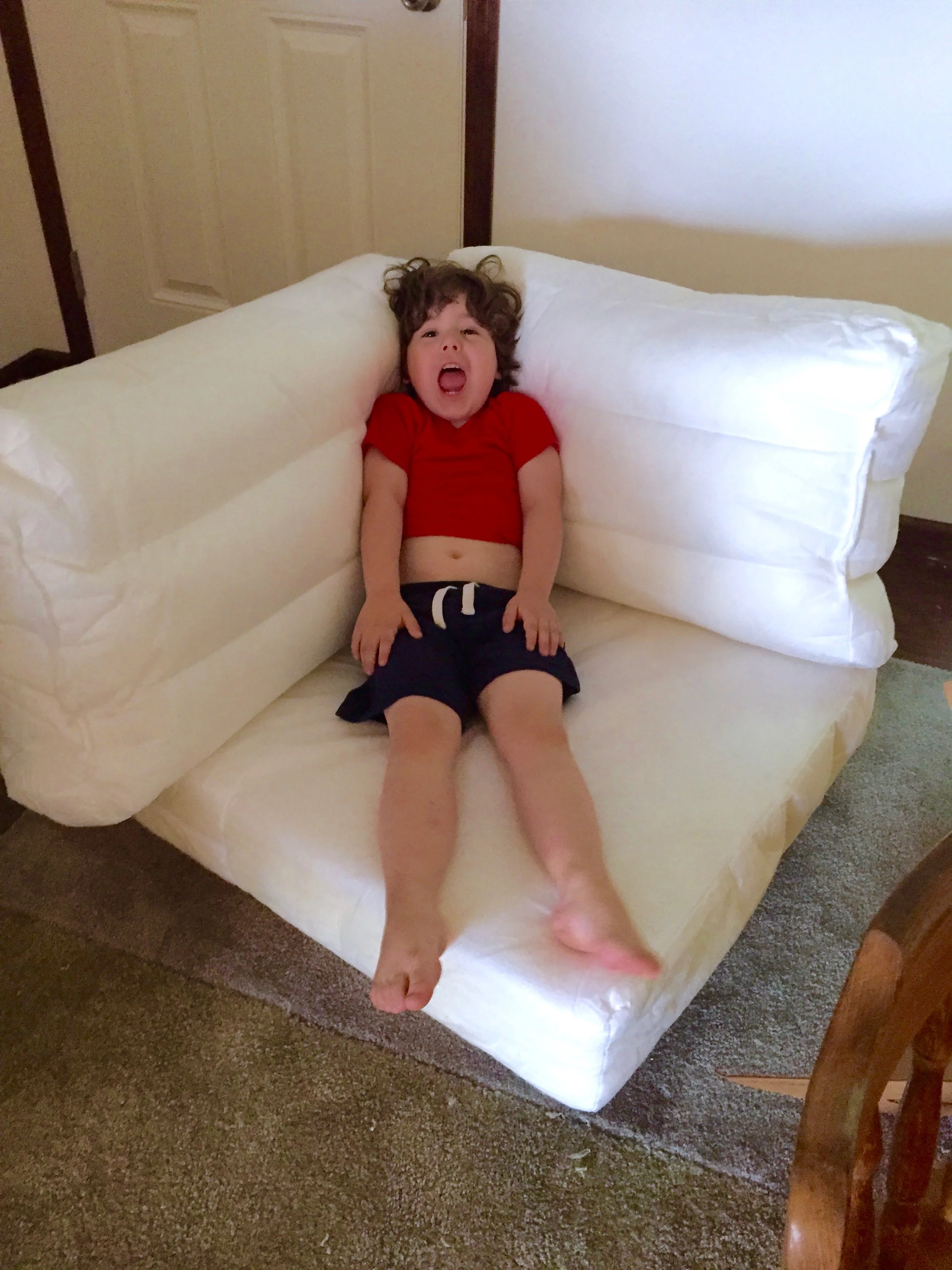 IKEA's sofas were considerably cheaper than anything else I could find. The quality is great and I love the modern, streamlined look. The catch? You're getting a price break because you have to build and upholster the thing yourself. We are very thankful to our friend Mike, who transported the massive L-shaped sofa from Brooklyn to the Catskills and then helped us assemble it with while our children climbed all over it. It took 3 adults and 2 children several hours to put it together. Speaking of children, how do people take glamorous interior photos without their kids constantly photobombing/dumping toys everywhere?