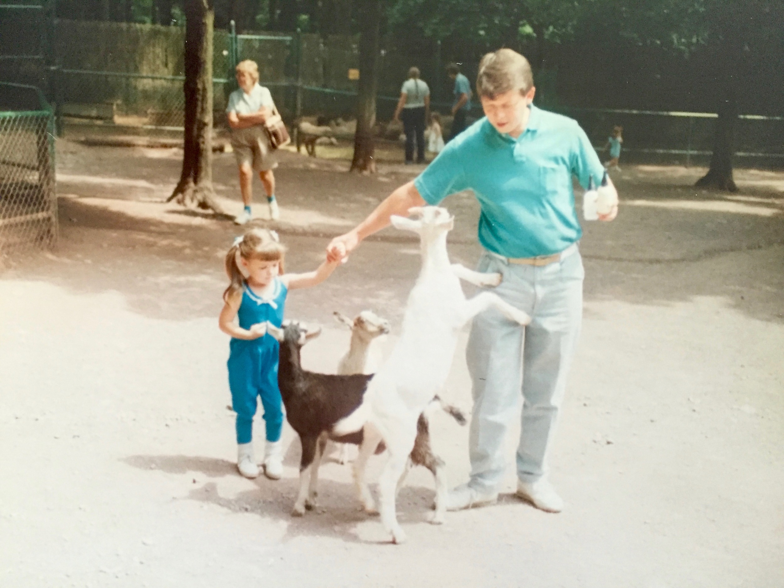 Here's Uncle Tommy again, battling some goats in the petting zoo. Another year, another bright-colored polo shirt, another animal attack.