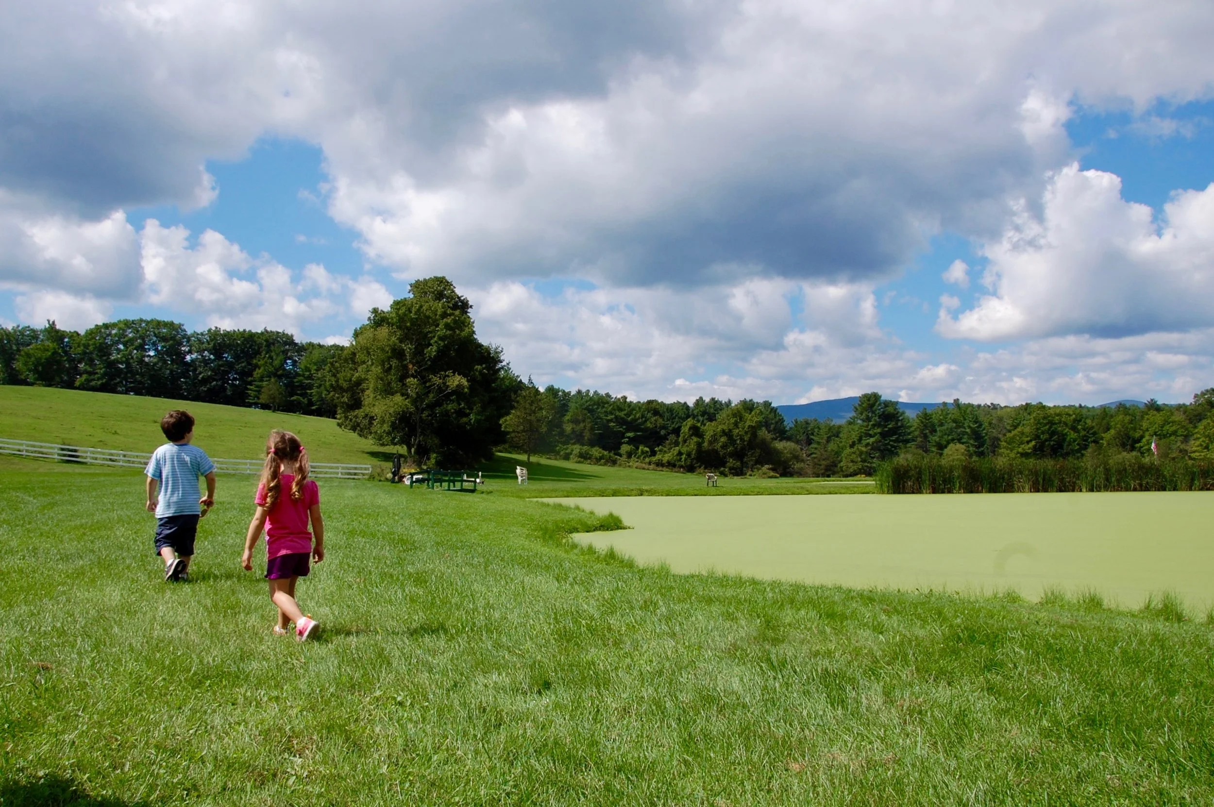 My kids are still too little for trail rides, but they did enjoy some pony rides at an affordable $6 each. And they also explored the farm's rustic horseshoe courts and a pond covered with algae, turning it a technicolor lime green.