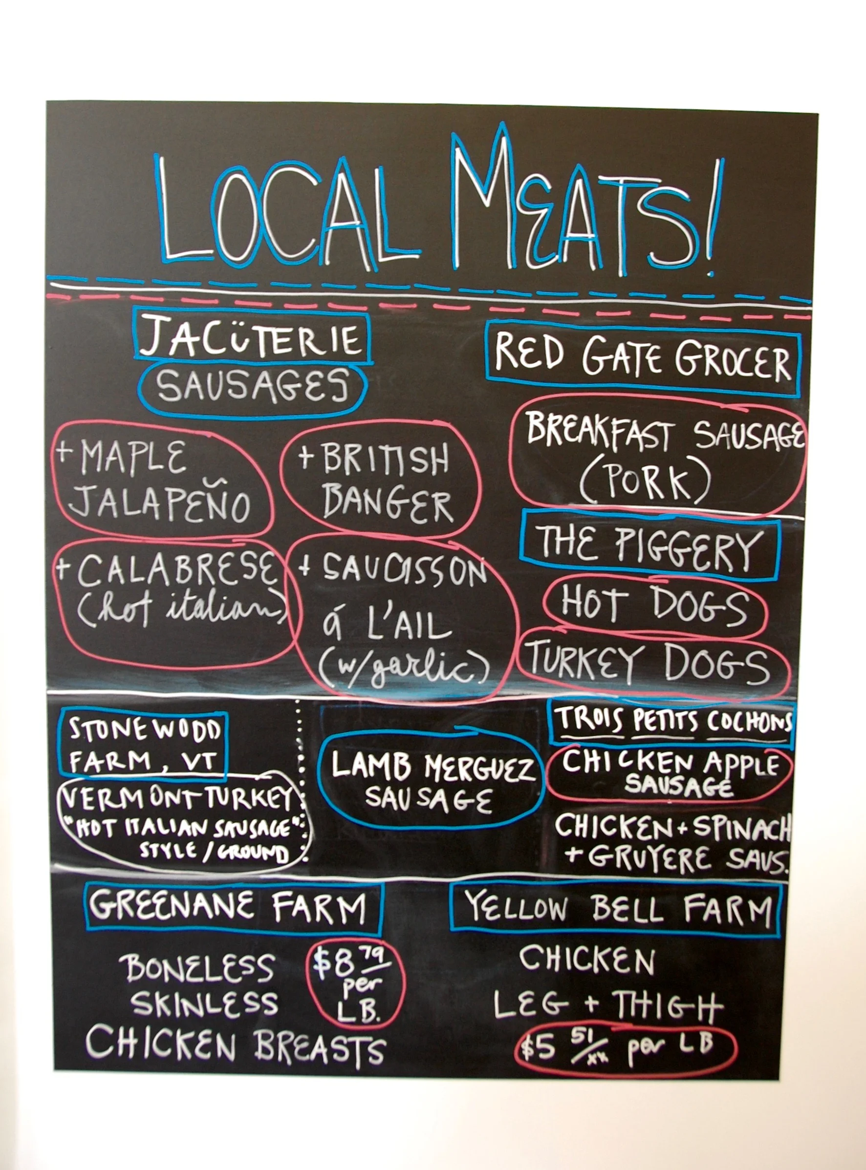 The groceries and goods are carefully stacked and the shelving is covered in prettily hand-written chalkboard ink, as though a kindergarten teacher lovingly labeled each and every item.
