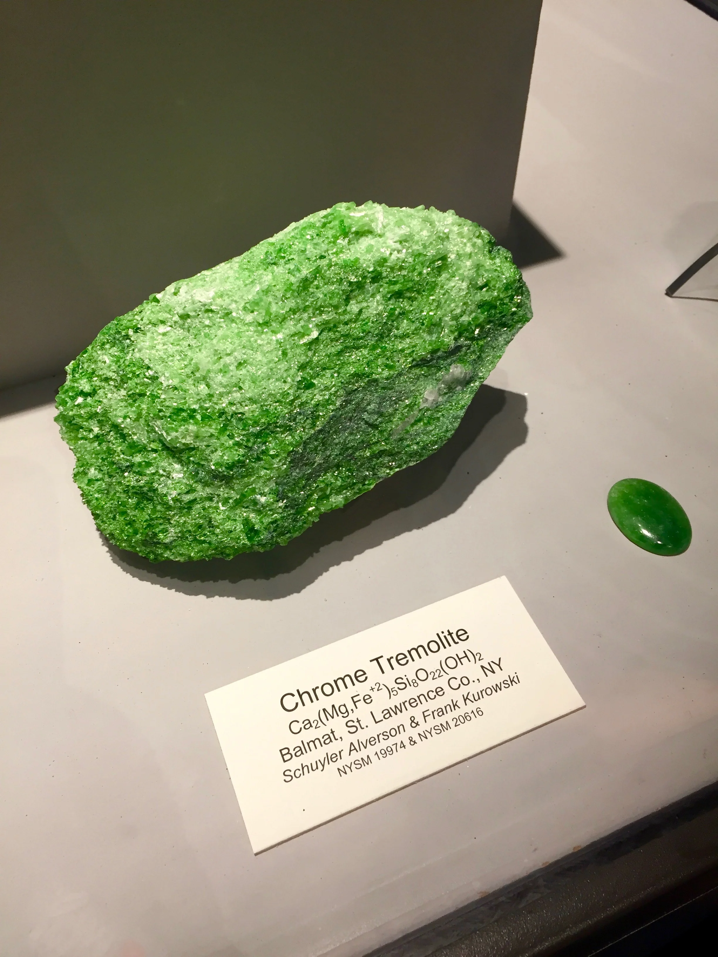 The museum is laid out in a way that makes it easy to skip through any area that doesn't suit your fancy. For instance, we just breezed through the Minerals of New York section because nobody else shared my excitement about this gorgeous green chrome tremolite, which was totally getting all up in my chakras.