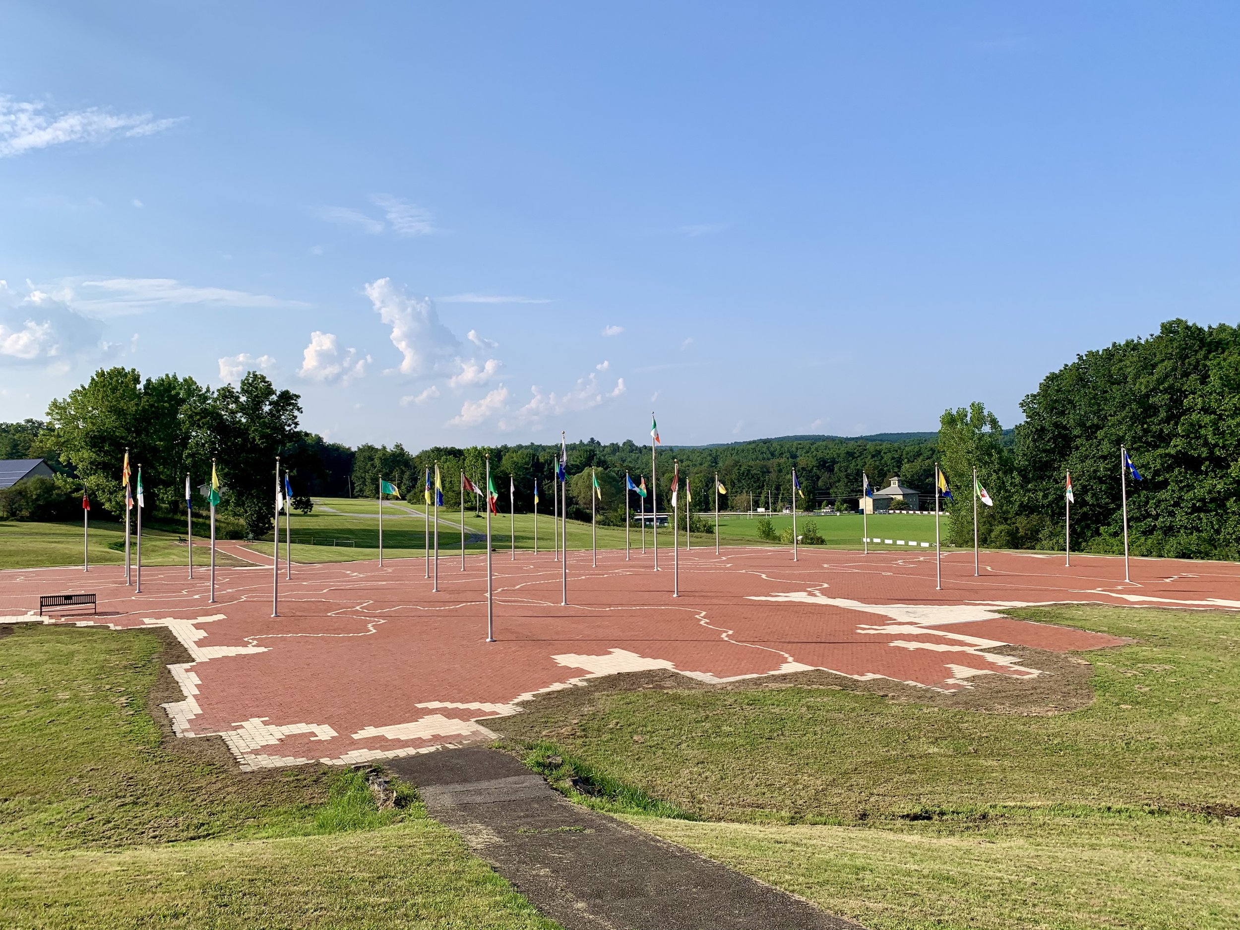 As pictured below, Greene County is also mapped out and marked with its own county flag. A bricked path bridges the gap between this Upstate New York county and the motherland.