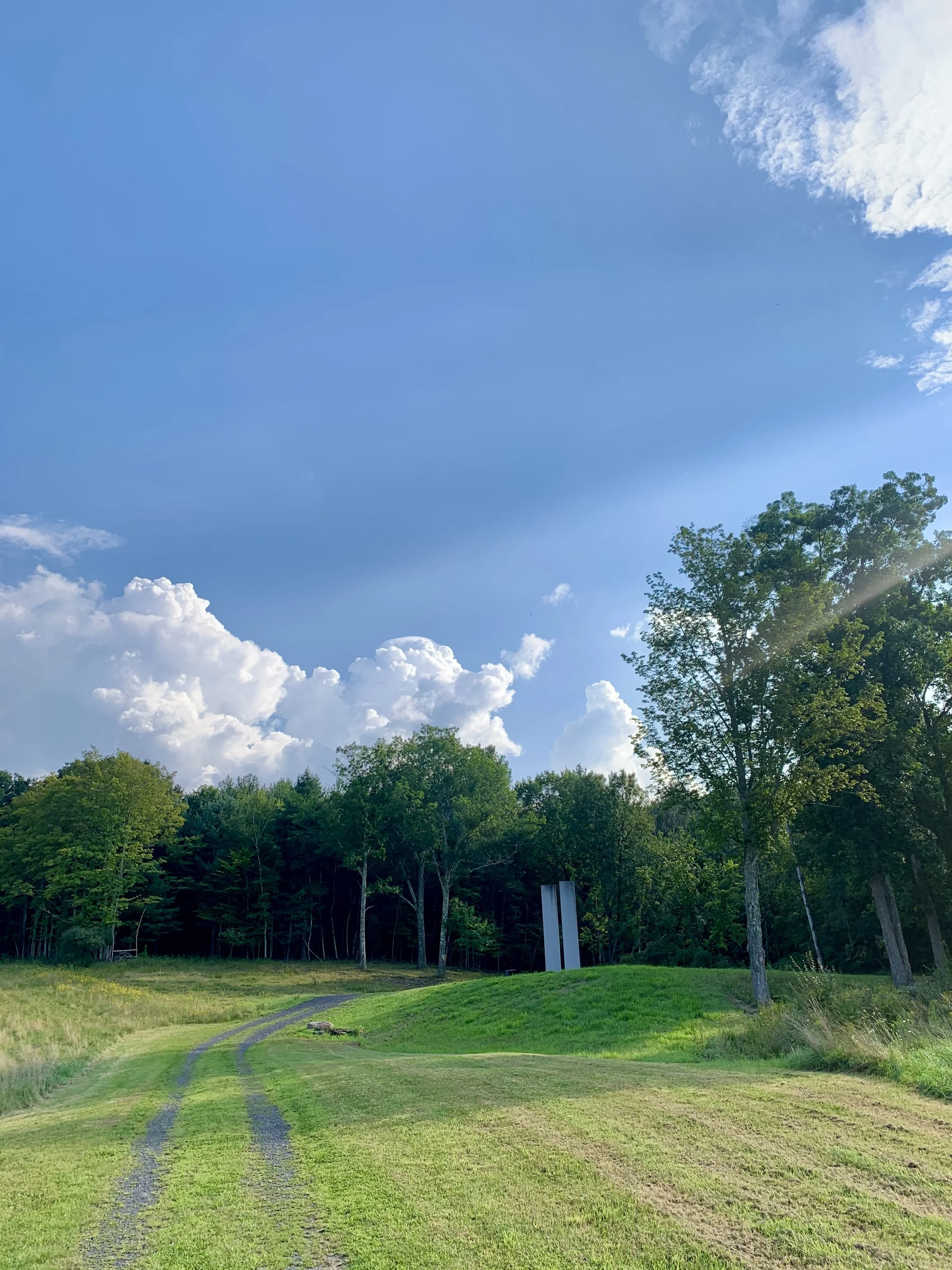 Up the hill, where the field meets the forest, a Twin Towers monument pays tribute to all the heroes of 9/11.