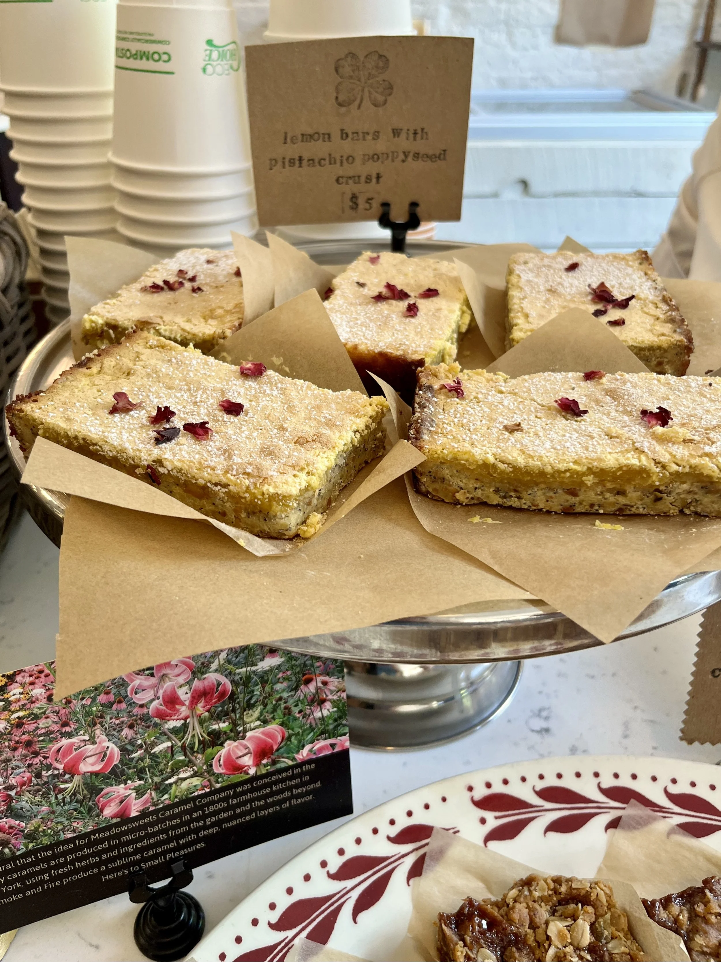 An ever-changing array of sweets show up on their countertops (and in the mouth-watering @catskill_chocolate_co Instagram feed). On any given day, you might find a lemon-poppy bar sprinkled with dried rose petals (pictured above), or a lime-basil bar with a graham cracker crust.