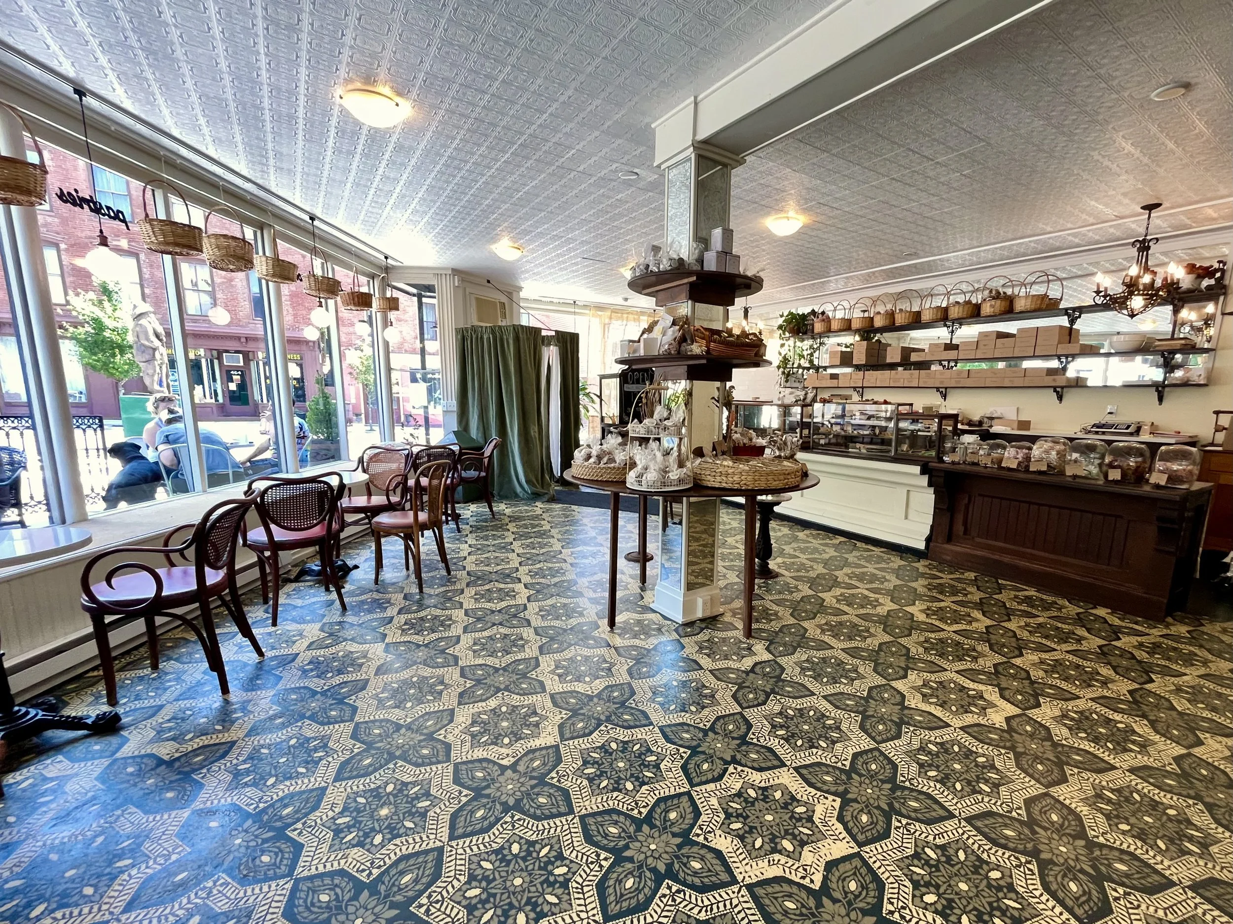 The folks at Catskill Chocolate Co. captured the old-timey elegance of their corner storefront with tin ceilings, gorgeous flooring, and antiques. They just opened in the spring of 2022, but they’ve created a space that feels like it’s been around forever.