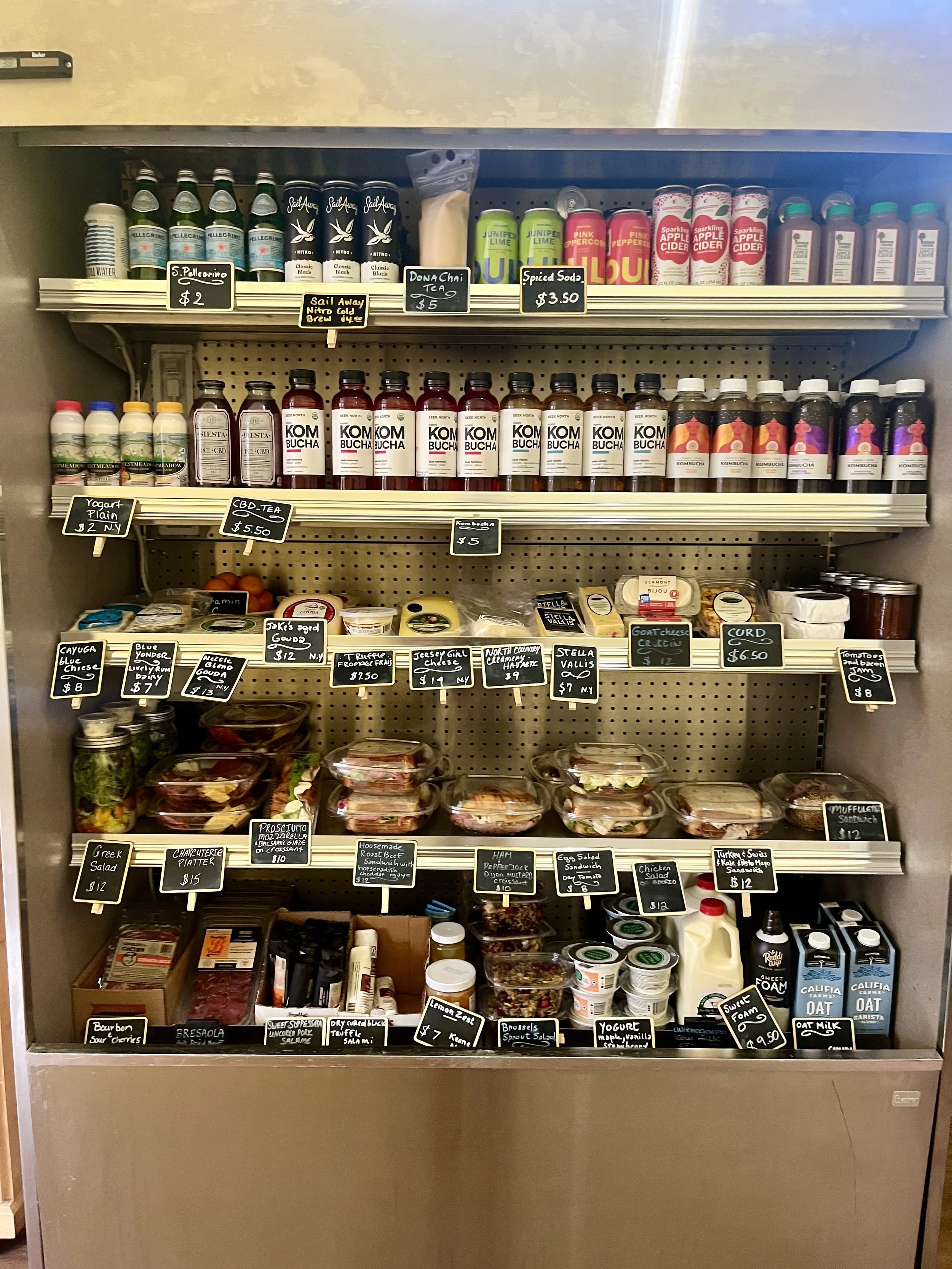 They’ve got pantry items for home-cooking inspiration and a fridge stocked with carefully curated beverages, local dairy products, and prepared foods.
