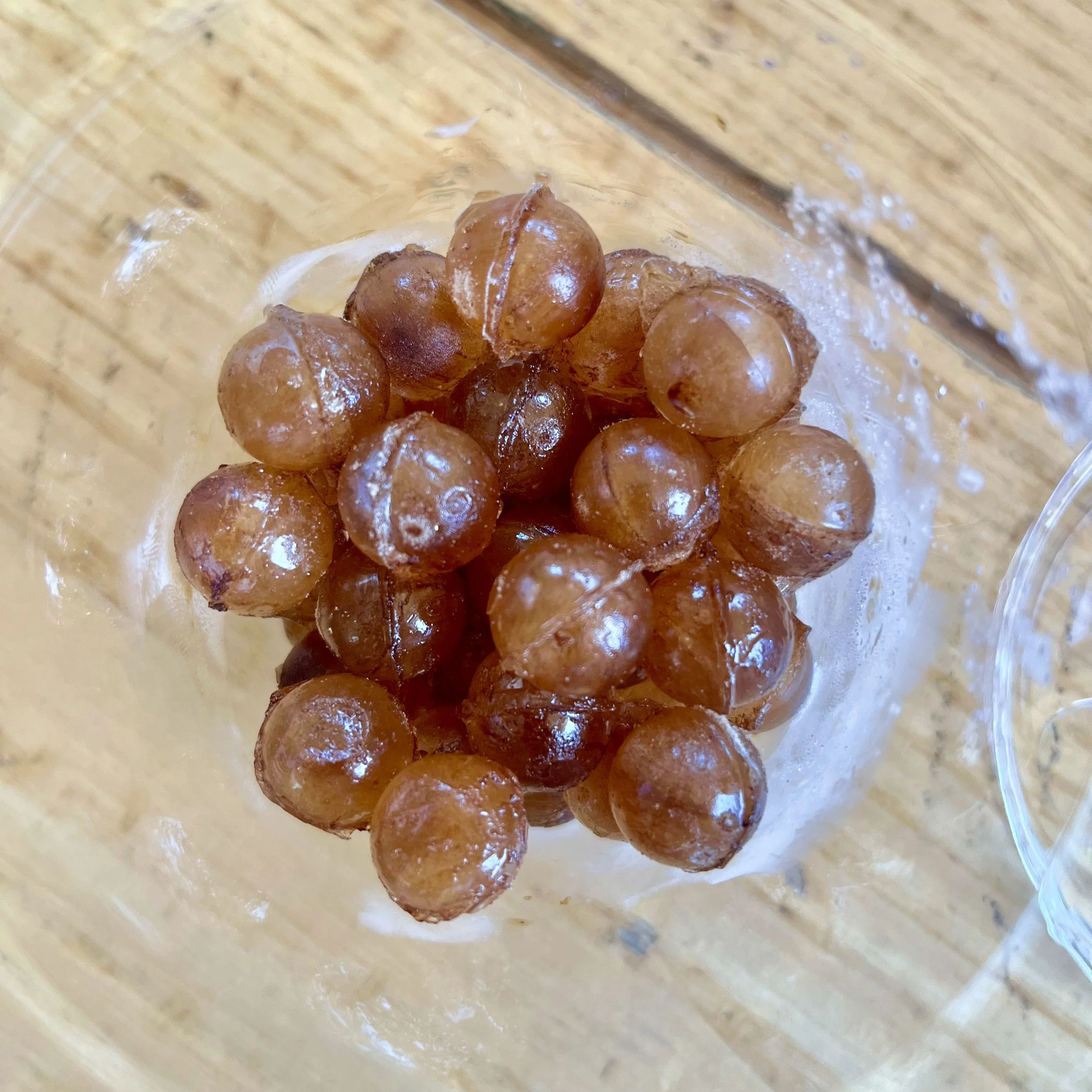 Frozen coffee spheres to keep your iced coffee cold and strong.