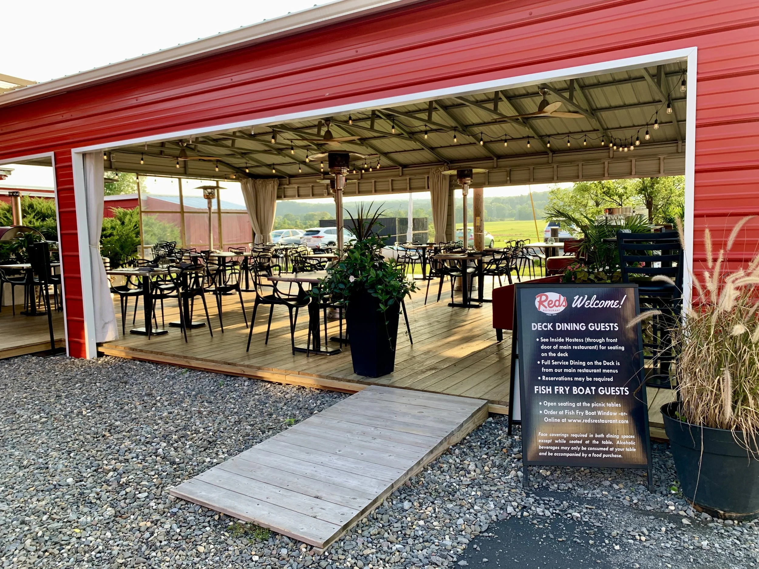 Outdoor covered seating at Red’s in the Hudson Valley.