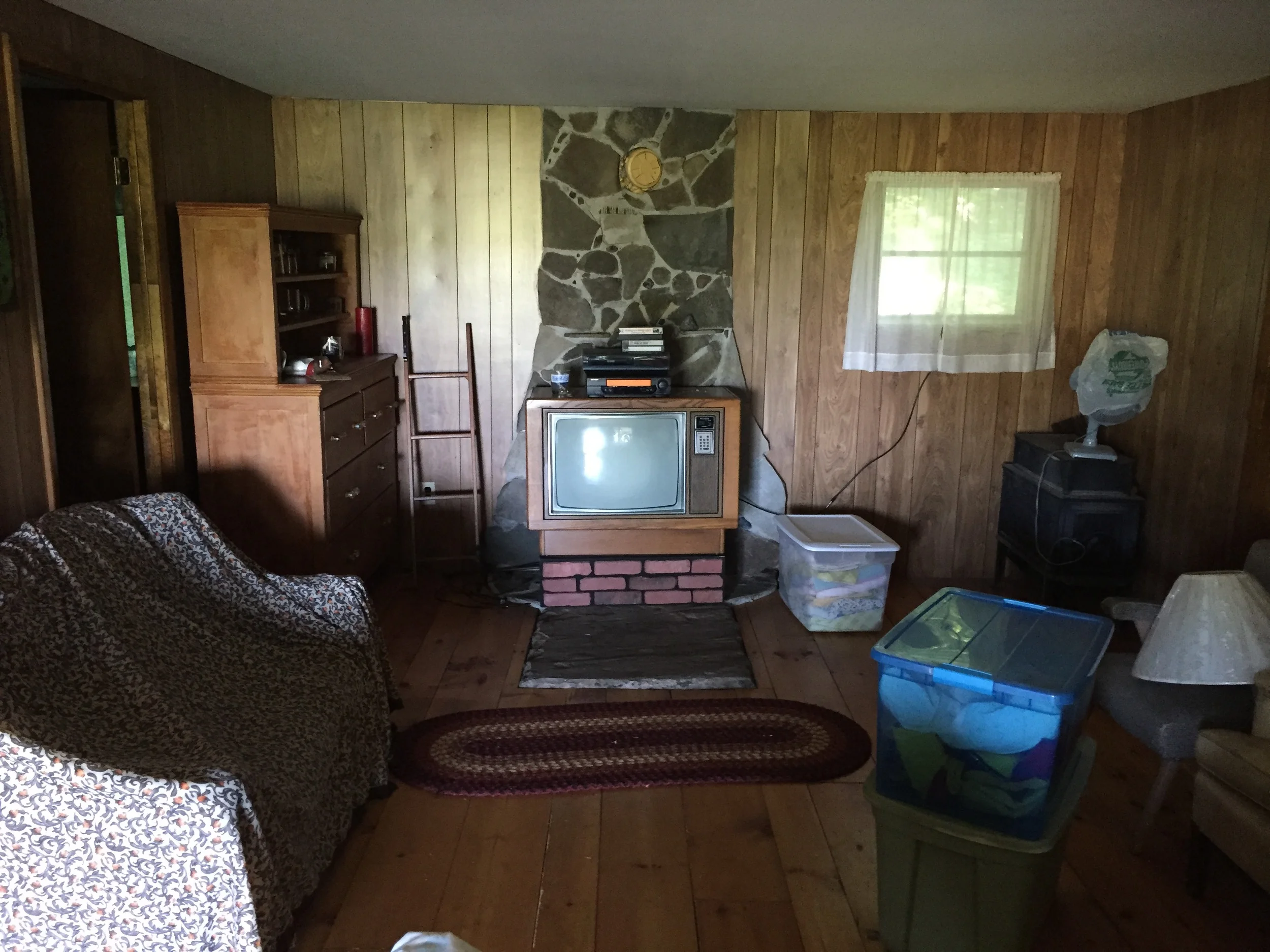 The last time I slept there. The summer of 2010, there were mice crawling up the walls and the slate fireplace at night. This put on more of a show than our TV, which was as large as a washing machine and attached to rabbit ears that did little to improve the fuzz that clouded the screen. The phone wires had been eaten through by rodents years before. There was an issue with the running water. I was newly pregnant with my fist baby and wondering if he'd ever get to see the place.