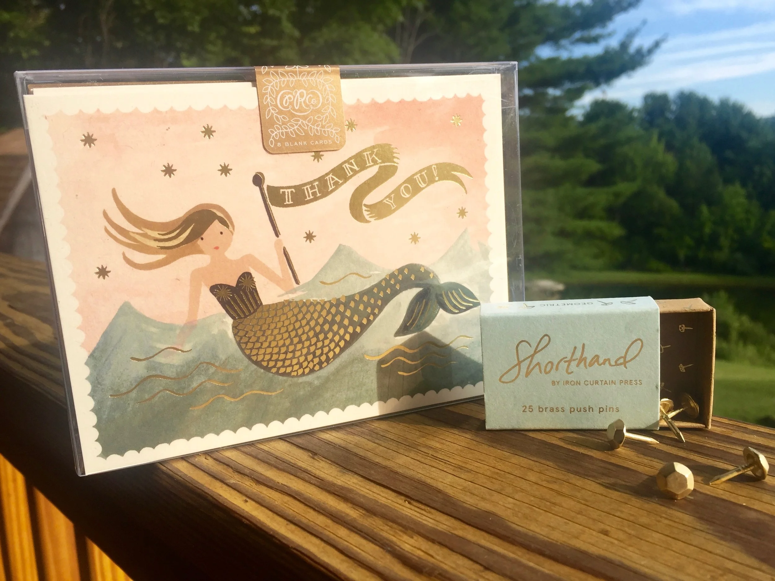 Susan's eye for design is evident on every tabletop and in each carefully curated item for sale. I treated myself to some mermaid thank you notes, glinting with metallic gold, and a matchbox of geometric brass push pins to hang a vintage-inspired Catskills pennant over my bedroom door.