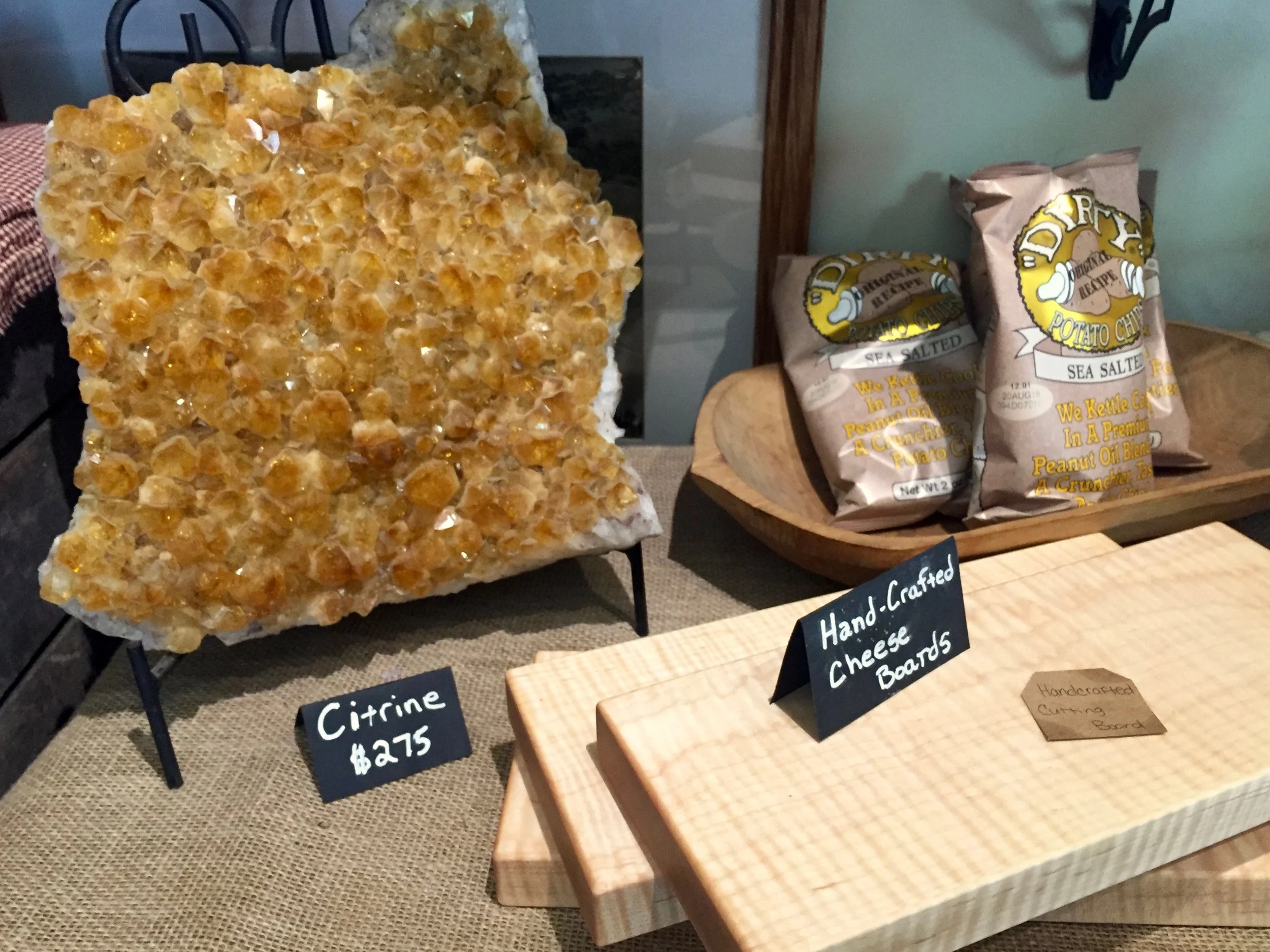 They've got local cheese, jam, and jerky, plus some gift items like hand-crafted cheese boards and a $275 chunk of sparkling citrine. If you want some crystals with your beer, you've come to the right place.