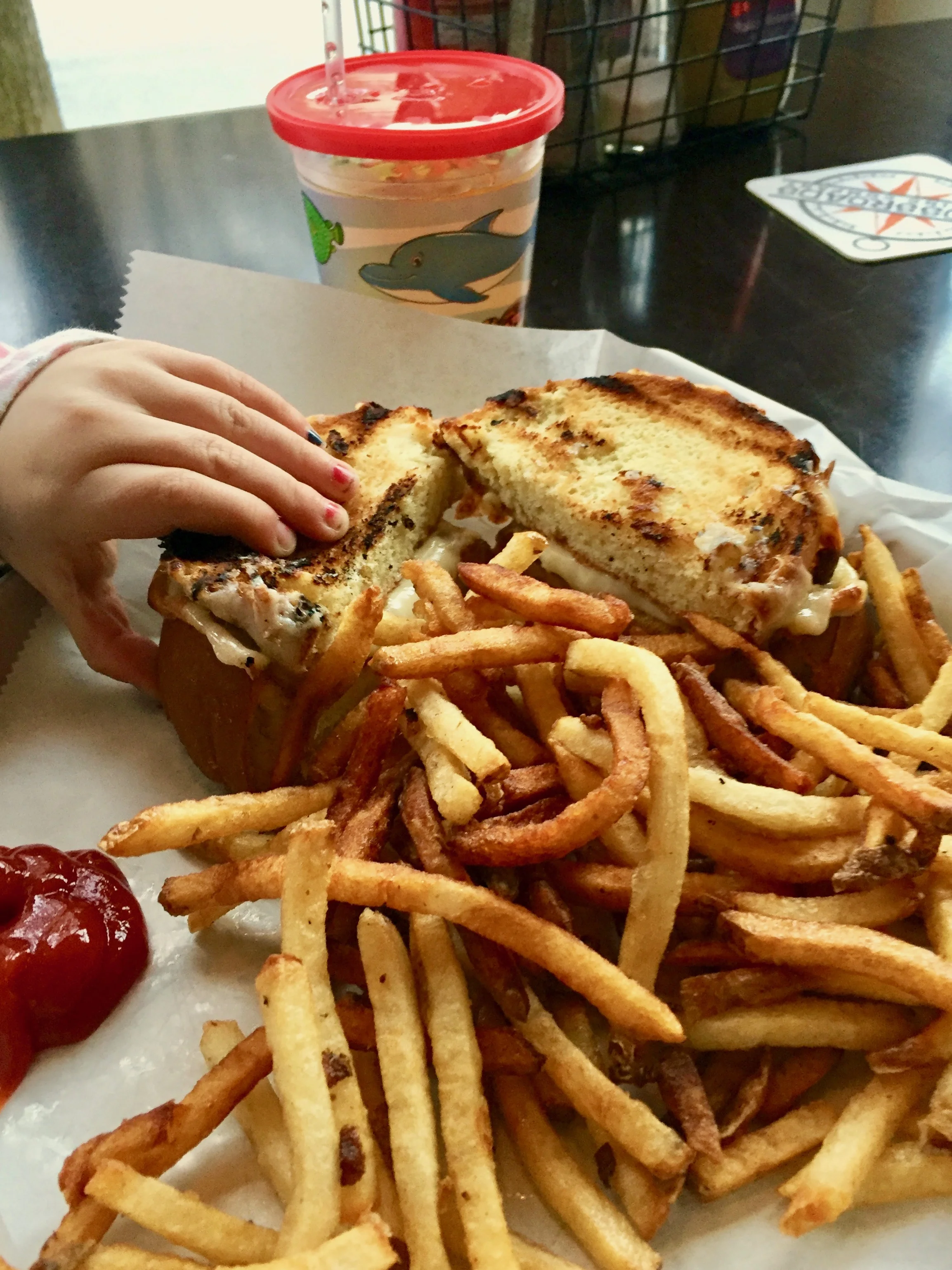 And my 4-year-old daughter was happy to get her grubby little fingers on a grilled cheese with a side of crispy fries and extra ketchup. Bonus points for the kid’s cup with a spill-proof top. (Note to parents: The kids menu is not listed on their website, but they do have one!)