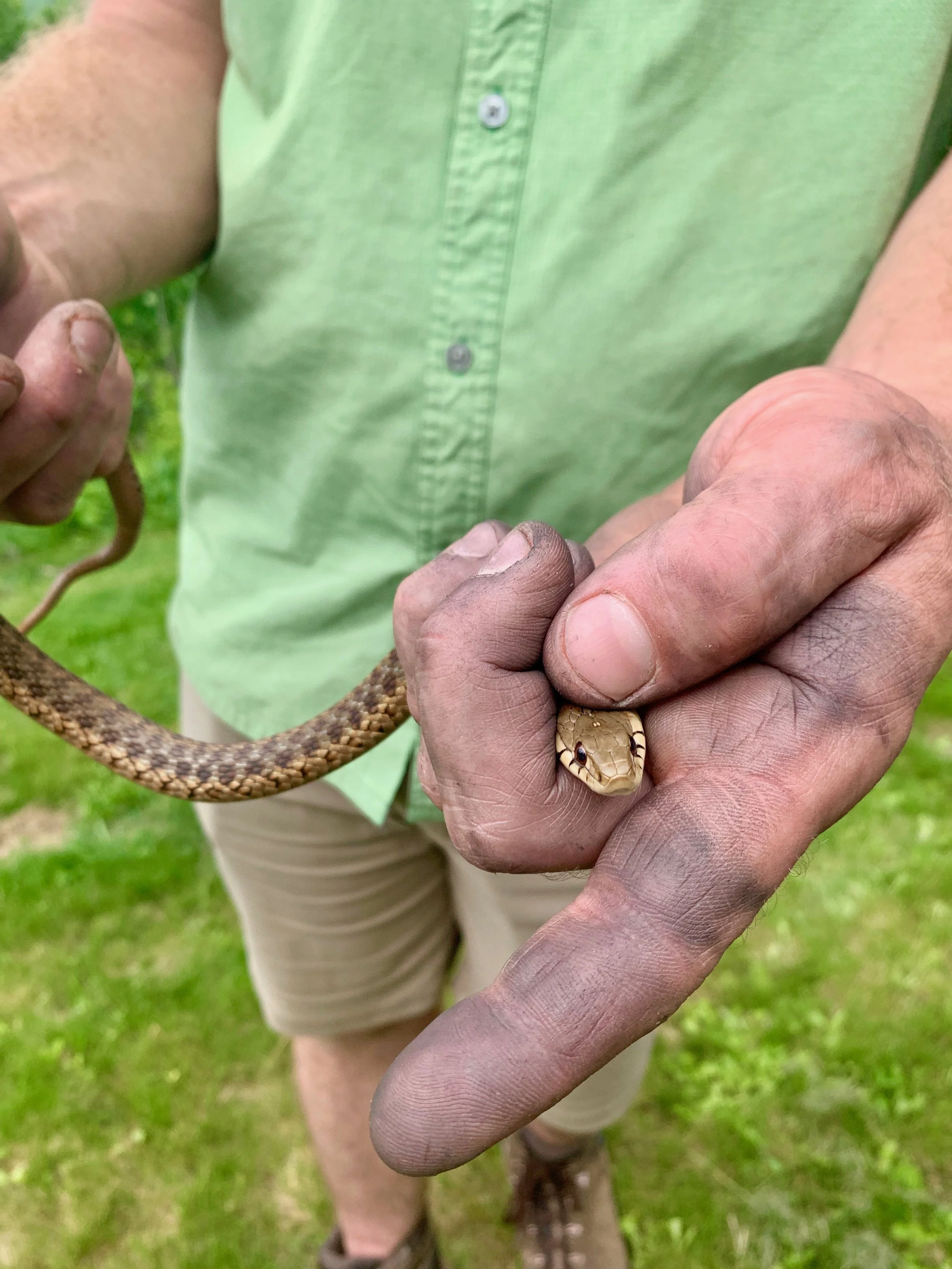 After a hard day’s work, there was enough of a trail that the kids could run down and get a better look at the bullfrogs in the pond. They were especially thrilled when Farmer Fred caught a snake.