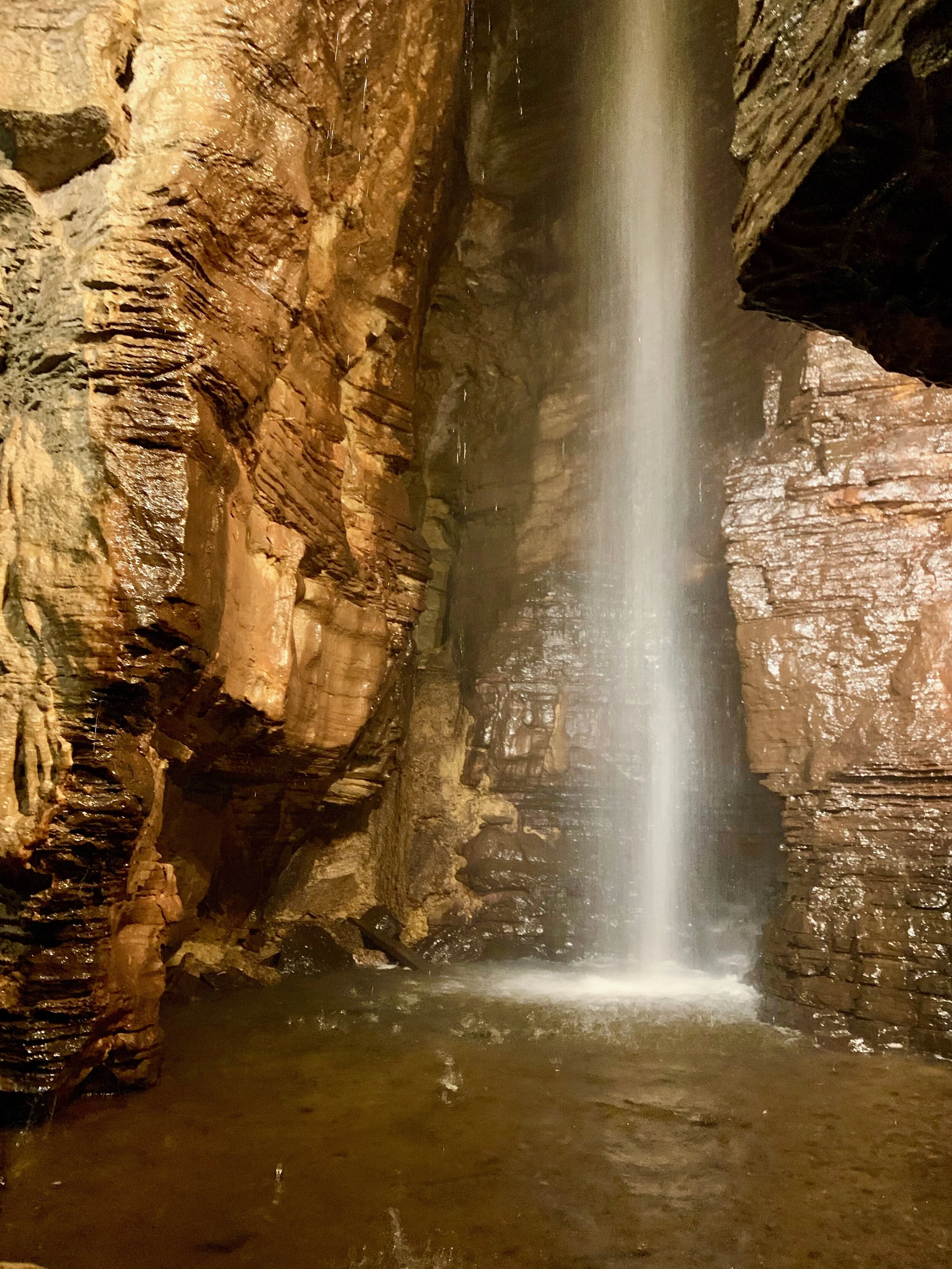 HOLY MOLY! The waterfall at Secret Caverns is a sight to behold, and this photo doesn’t begin to capture its majesty.