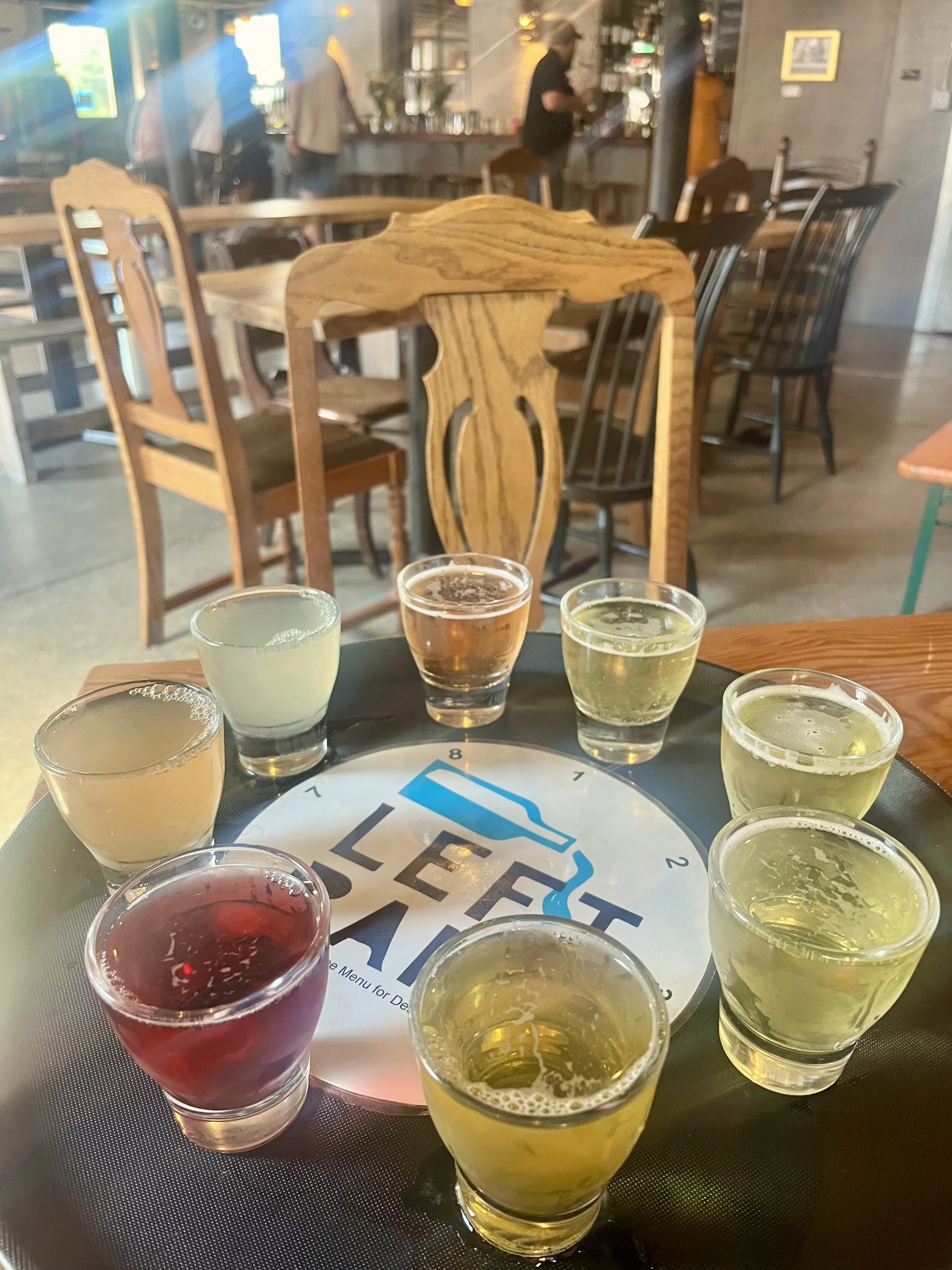 A flight of hard cider at Left Bank Cider in Catskill, NY