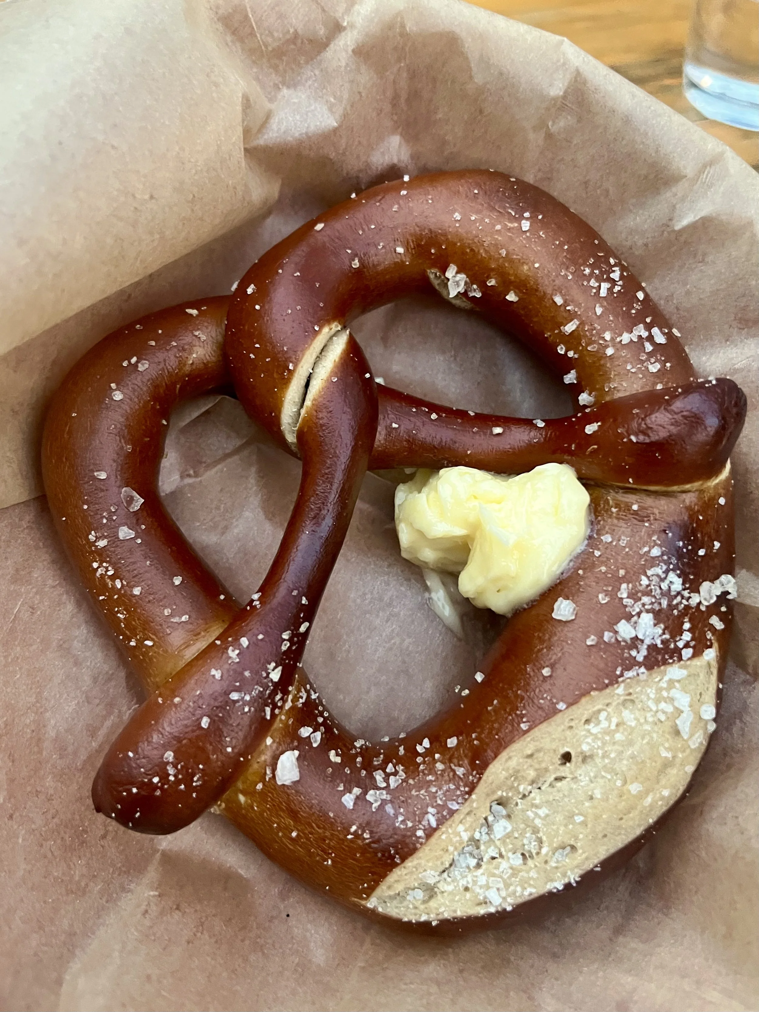 The pretzels were delivered to our table quickly with a big hunk of melty butter, curing any crankiness my sweet angles might have needed to overcome.